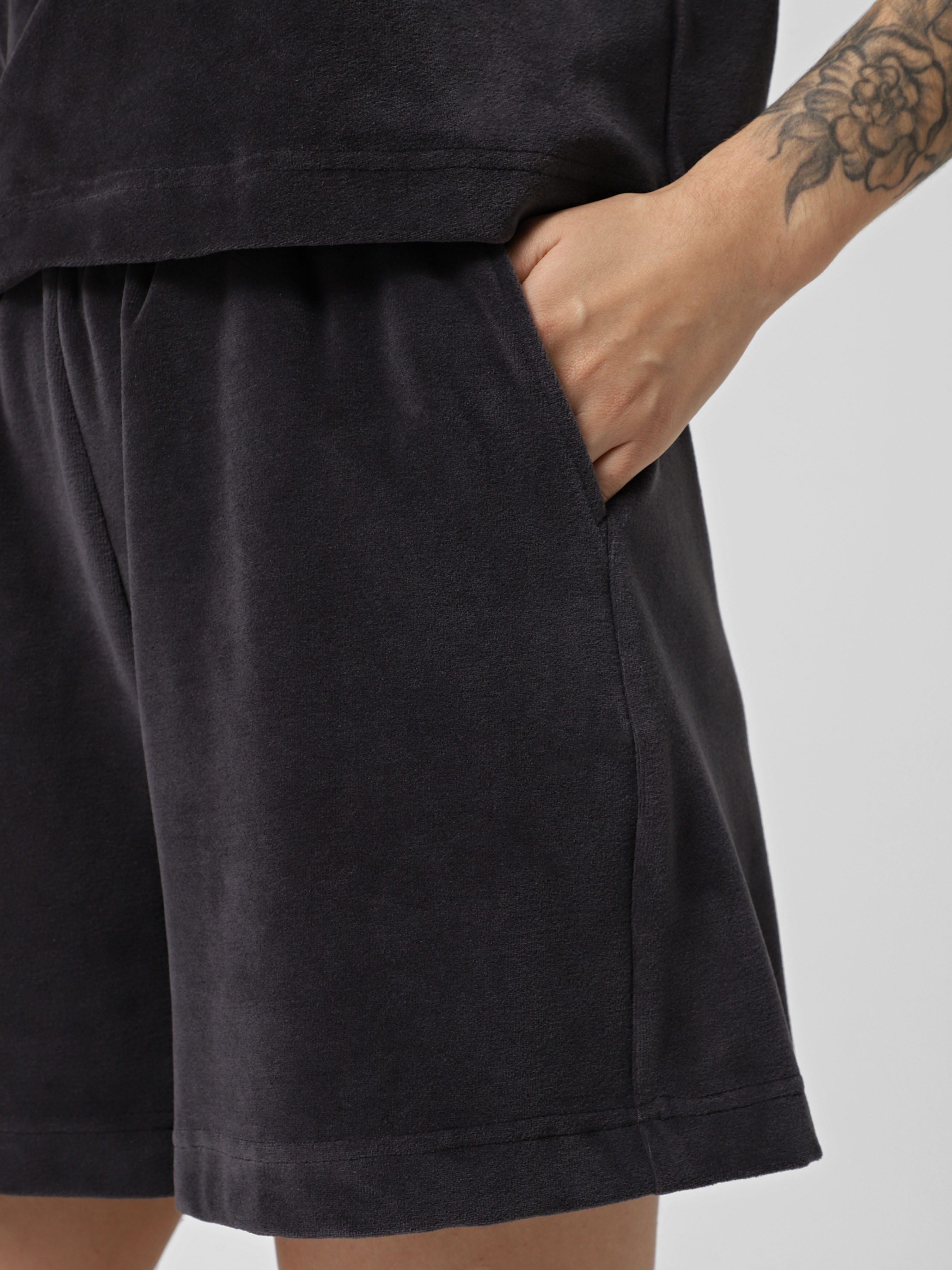 Шорти велюрові ТМ Promin - тільки високоякісні натуральні тканини. Склад: Бавовна - 80%, Поліестер - 20% Колір: Сірий