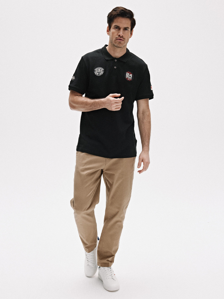 LM24 NATANIEL Чоловічі брюки чінос: - прямі штанини, - кишені чіноси спереду, - випрасувані складки на штанинах, - укорочені штанини додають невимушеного характеру, - дві кишені ззаду, - невелика кишеня ззаду на штанині з фірмовим декором, - застібається на гудзик і блискавку, - унікальна внутрішня обробка, - з м'якої, приємної на дотик бавовни з додаванням еластану. Склад 98% бавовна 2% еластан Сезон: Весна/Літо Догляд: - прання при максимум 30 °С - не відбілювати - не сушити в сушильній машині - прасувати максимум при темп. 150 °С - не хімчистка Розмір на моделі - XL Зріст моделі - 188 см
