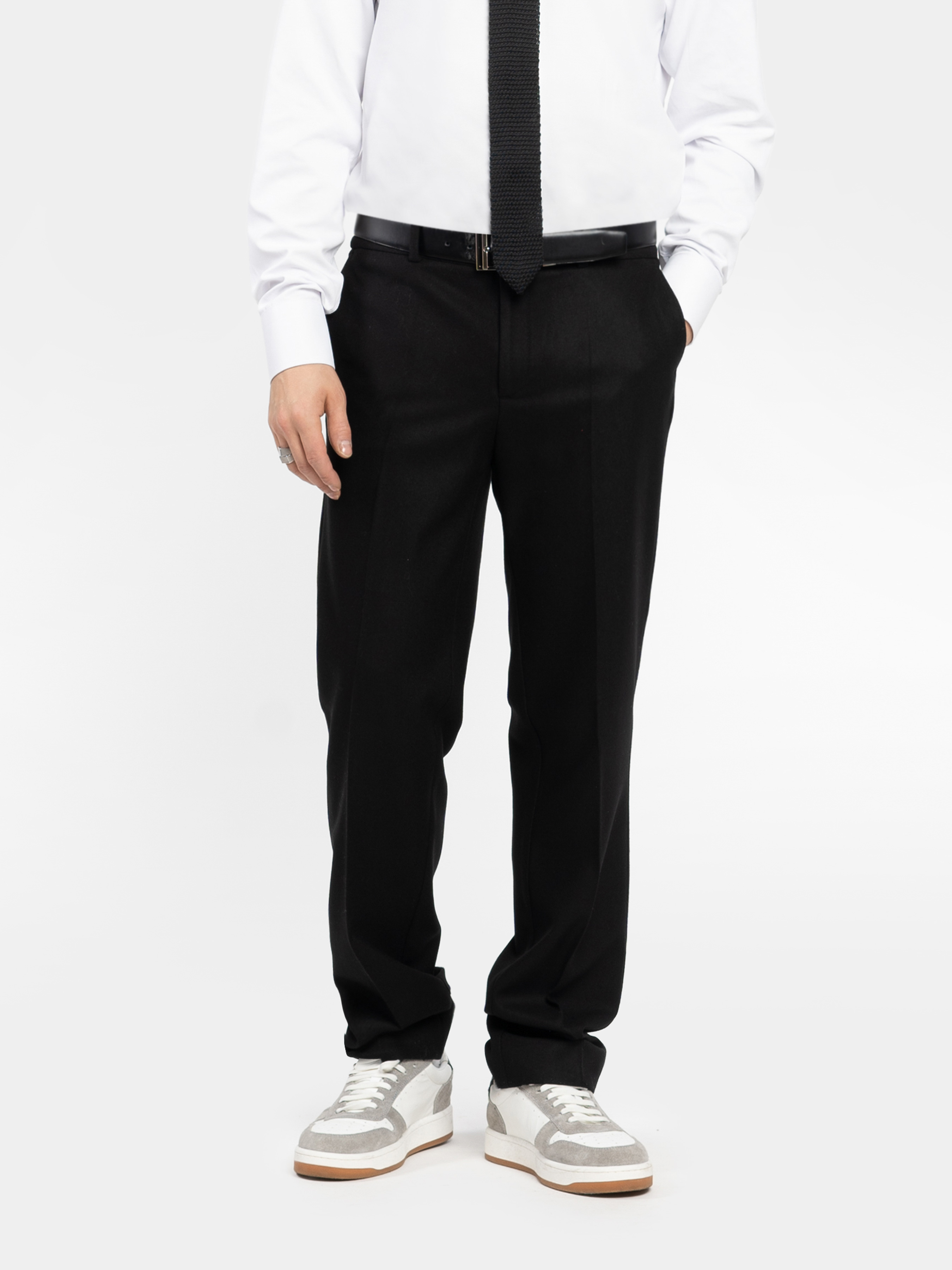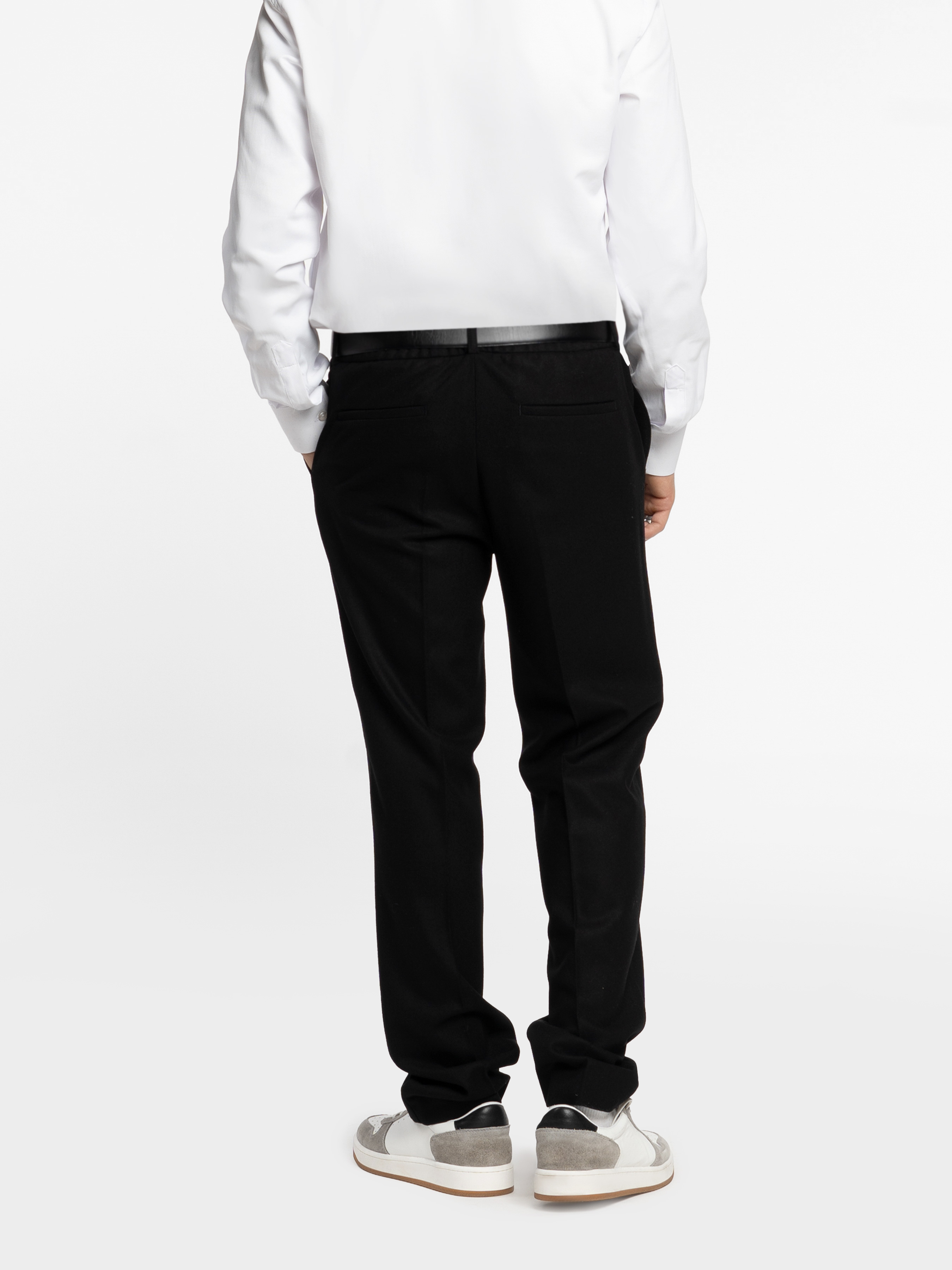 Чоловічі брюки Arber чорного кольору створені з тканини на основі шерсті з добавками, що забезпечують тепло, м’якість та високу зносостійкість. Тканина приємна на дотик, тримає форму та гарантує комфорт протягом усього дня. Модель має середню посадку, акуратні стрілки та пояс частково на гумці, із застібкою на блискавку та ґудзик для зручності. Оснащені двома косими боковими та двома задніми кишенями. Ідеально поєднуються з блейзером M02.19.02.531 із тієї ж тканини для завершеного вишуканого образу. Модель на фото: розмір 48, зріст 188 см, параметри 97/78/96.