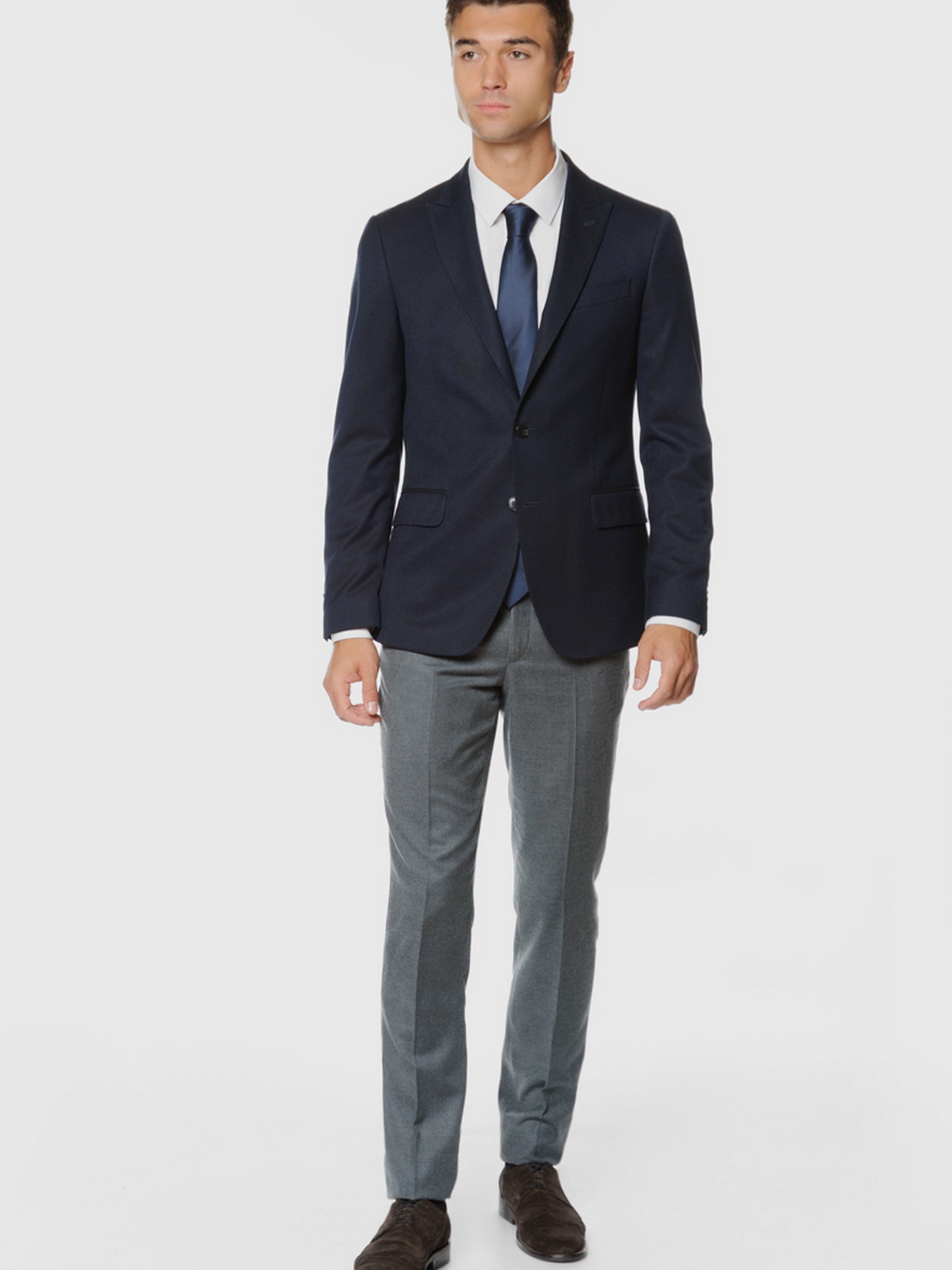 Темно-синій піджак Arber прилеглого силуету для цінителів модного елегантного стилю. Модель із застібкою на 2 гудзики, з гострими лацканами, двома прорізними кишенями з клапаном і двома шліцами. Поєднуючи піджак з однотонними брюками зі стрілками та білою сорочкою, можна створити елегантний образ для модної вечірки.