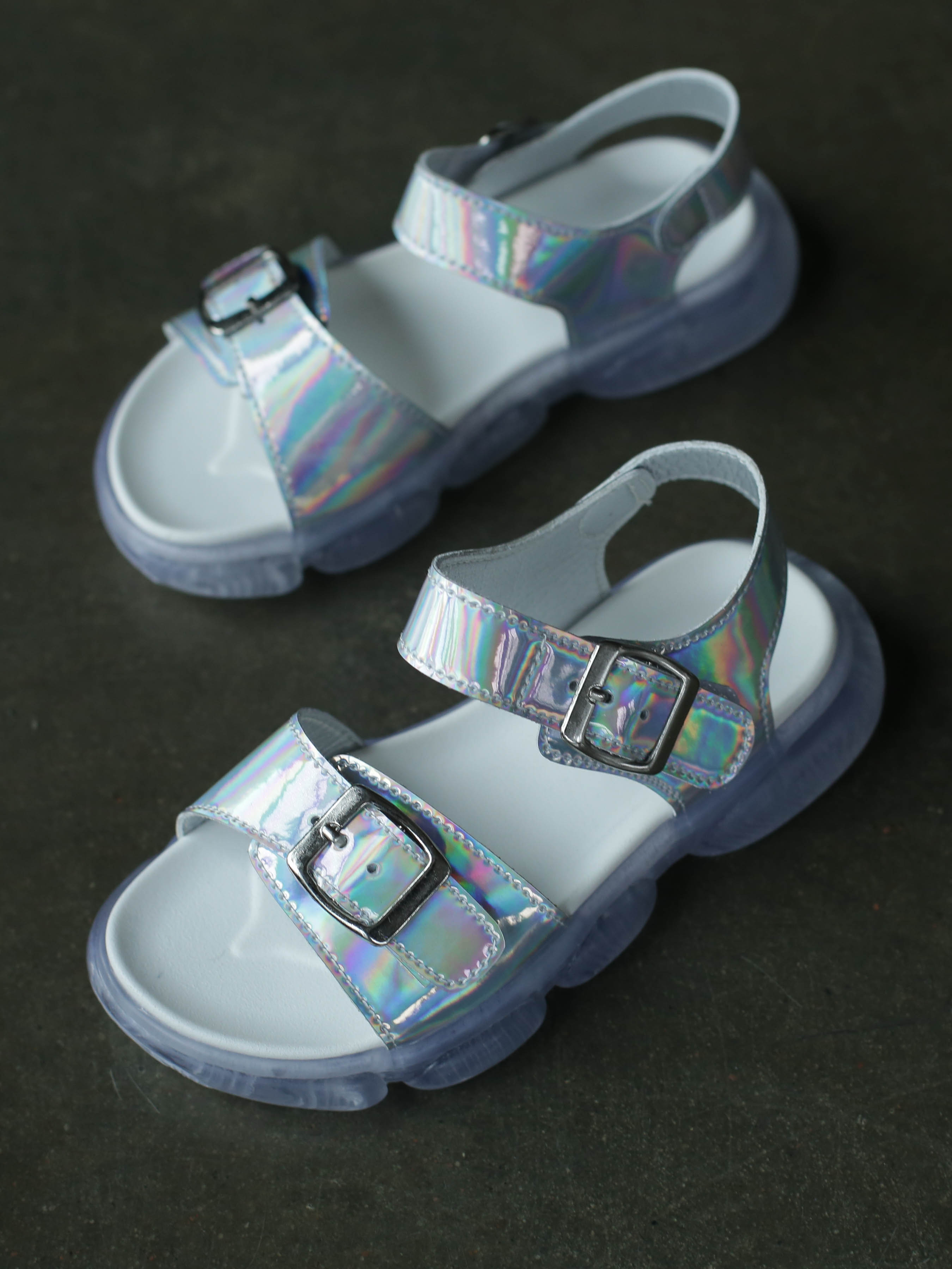 Босоніжки виготовлені з лака на основі мікрофібри, підкладка - натуральна шкіра . Регулятор повноти - липучка. Босоніжки дуже легкі, зручні і супер еластичні. МАЛОМІРНІ. 26р - 16 см