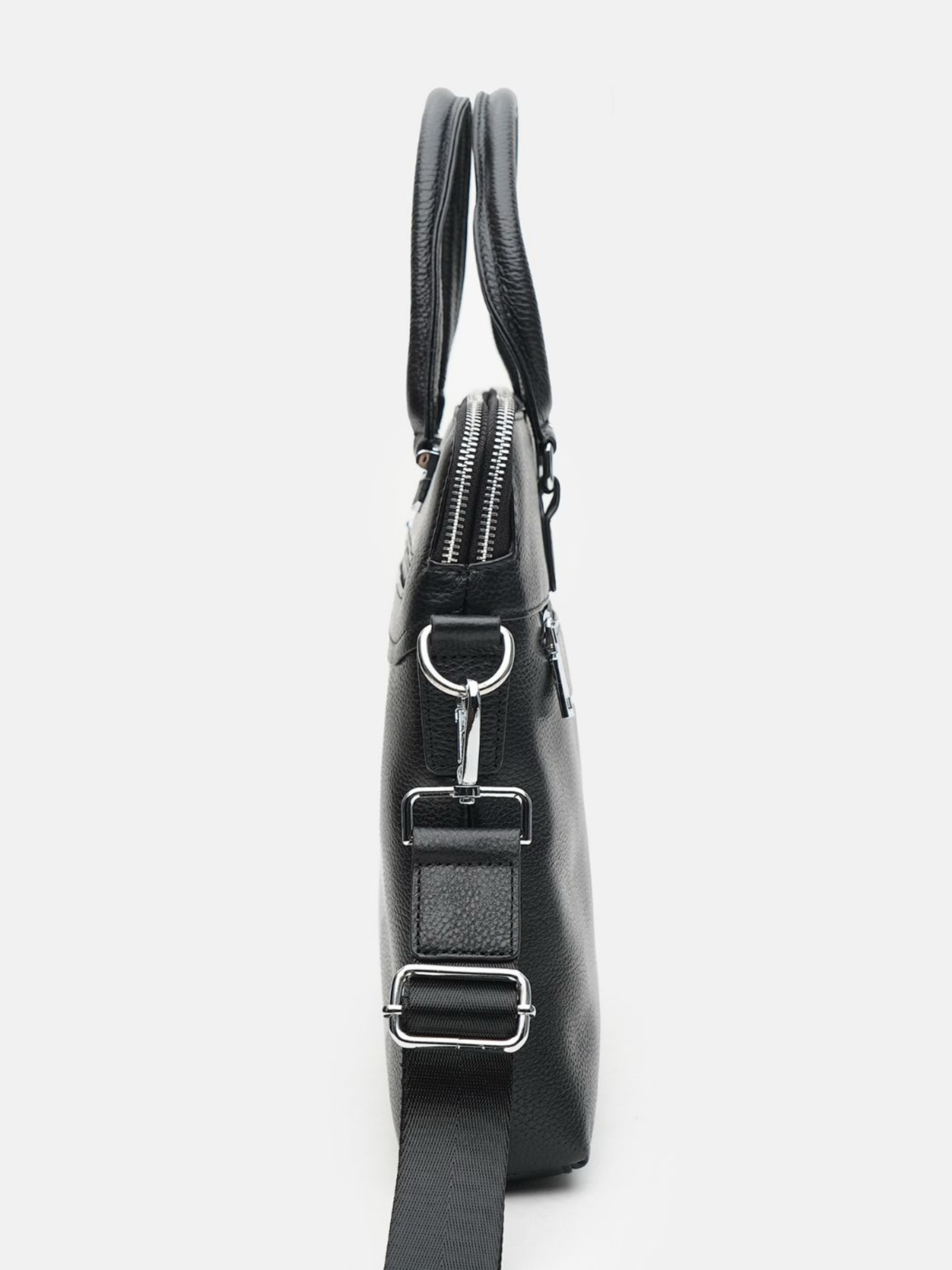 Сумка виготовлена з натуральної шкіри. Має 2 відділення на блискавках. Всередині 1 відділення під ноутбук або планшет і 3 кишені на блискавці. Зовні 2 кишені на блискавці. Підкладка текстилю. Фурнітура-метал. Колір фурніти срібло. Знімний плечовий ремінь регулюється по довжині. Розмір: 38,5х7х29,5