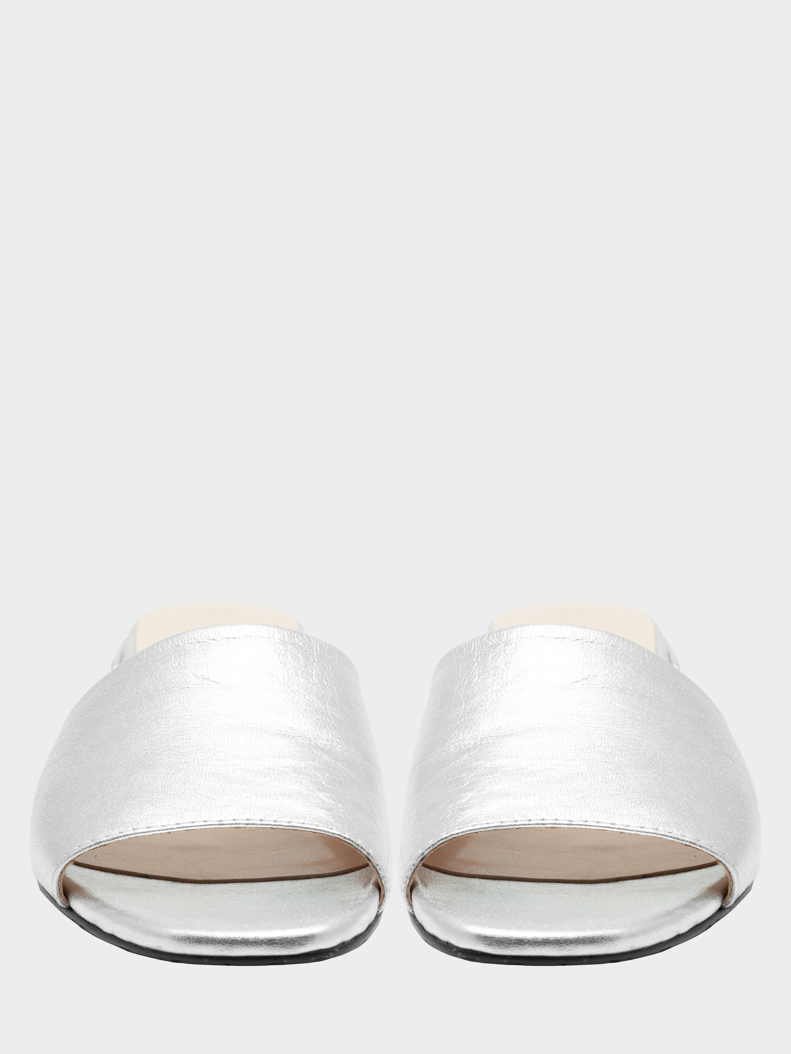 Шльопанці з натуральної м'якої шкіри срібного кольору. Є гумова вставка з внутрішньої сторони для повноти підйому. Устілка- з силіконом. Висота каблука 3 см. 35 р - 22,5 см, 36 р - 23,3 см, 37 р - 24 см, 38 р - 24,6 см, 38 р 24,6 см, 39 р 25,2 см, 40 р - 26 см.