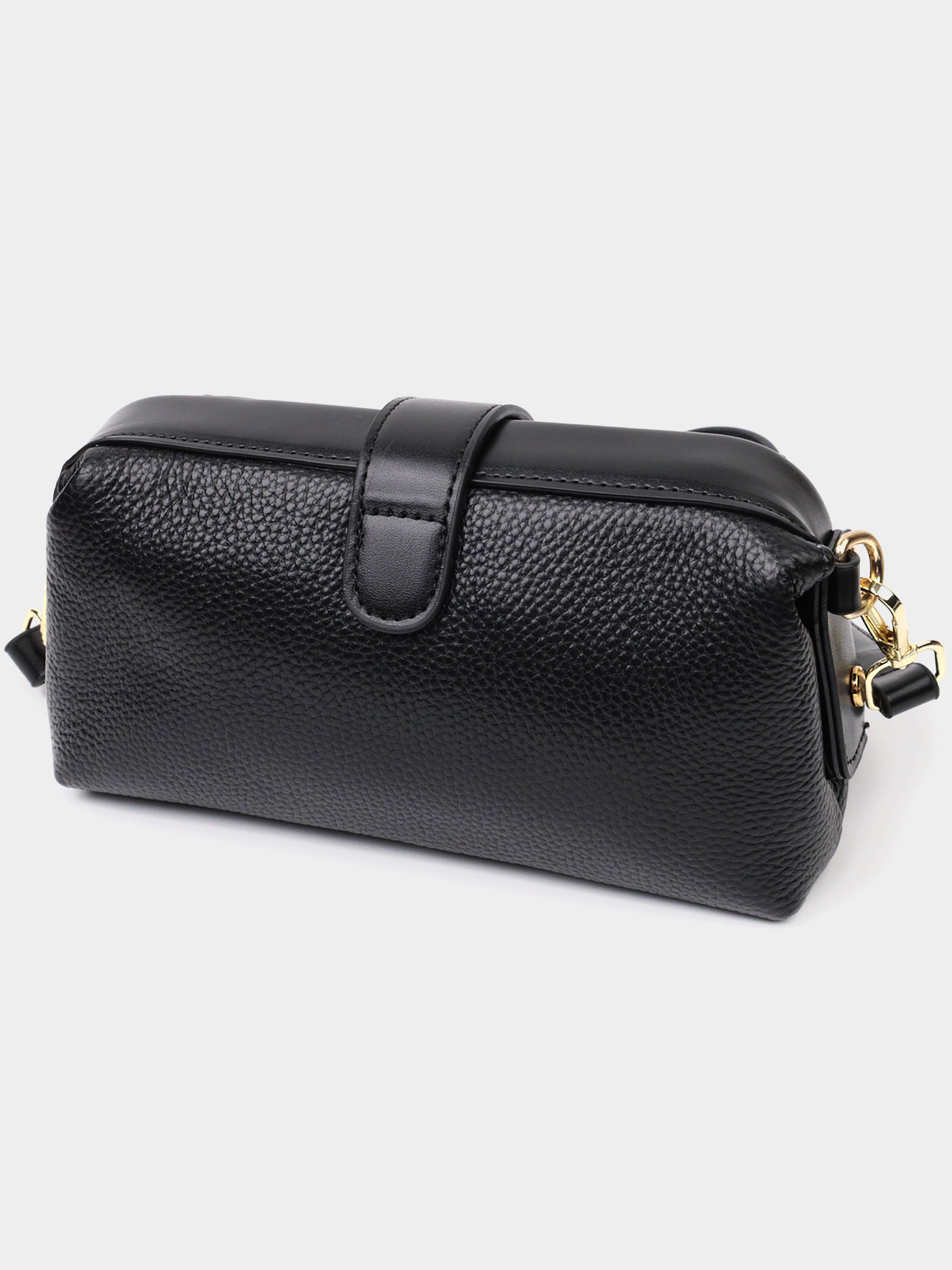 Колір: чорний; Матеріал: натуральна шкіра; Розмір (ШхВхГ, см): 19,5х10х5,5 см; Країна виробник: Китай. Бренд: Vintage. Особливості: - закривається на механічну клямку і хлястиком на магніт; - одне основне відділення всередині якого кишеня на блискавці та кишеня відкритого типу; - знімний шкіряний ремінь. Жіноча сумка з незвичайною клямкою, яка однозначно приверне погляди оточуючих. Виріб пошитий з якісної натуральної шкіри, яка довго носиться і не втрачає свого первісного вигляду. Аксесуар складається з одного основного відділення всередині якого розташована кишеня відкритого типу та кишеня на блискавці. Носити сумку можна в руці як клатч, на плечі і через плече, для цього є шкіряний ремінь, що знімається. У виробі використано якісну фурнітуру кольору жовтого золота.