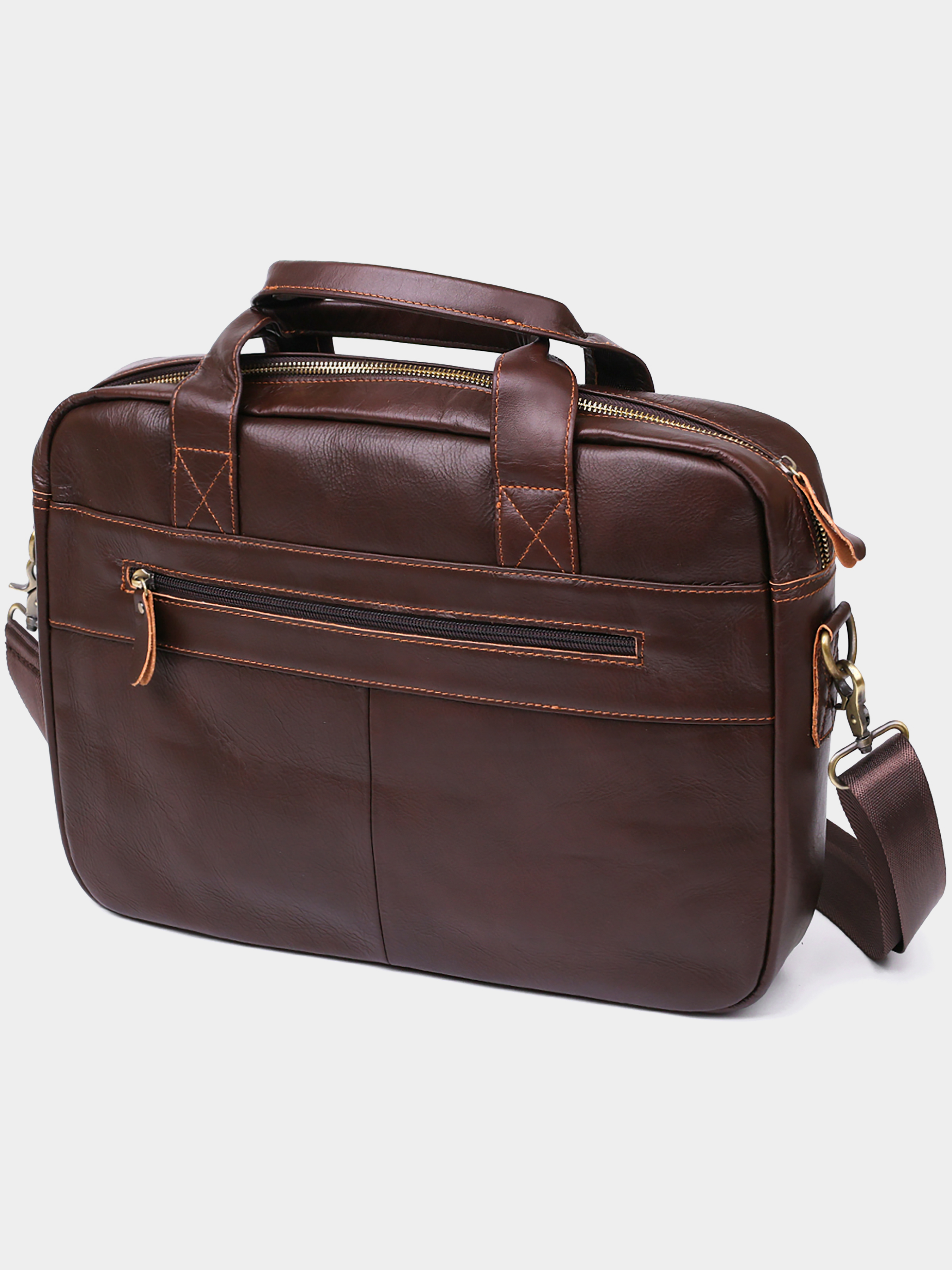 Колір коричневий; Матеріал: натуральна шкіра; Розміри (ШхВхГ, см): 40х27х7 см Країна виробник: Китай. Бренд: Vintage. Опис: - 1 основне відділення на блискавці; - кишеня на блискавці; - відділення на липучці для ноутбука; - дві кишеньки для телефонів; - на зовнішньому боці кишеня на блискавці; - на тильній стороні кишеня на блискавці; - дві шкіряні ручки; - знімний текстильний ремінь для переносу на плечі. Чудова містка чоловіча сумка для ноутбука у красивому насиченому коричневому кольорі. Матеріал виготовлення - натуральна високоякісна шкіра з відмінними характеристиками. Виріб має гладку і приємну на дотик фактуру. Усередині є спеціальне відділення для ноутбука на липучці, кишені для телефону та маленька потайна кишеня на блискавці. На зовнішній стороні також є місткі кишені.