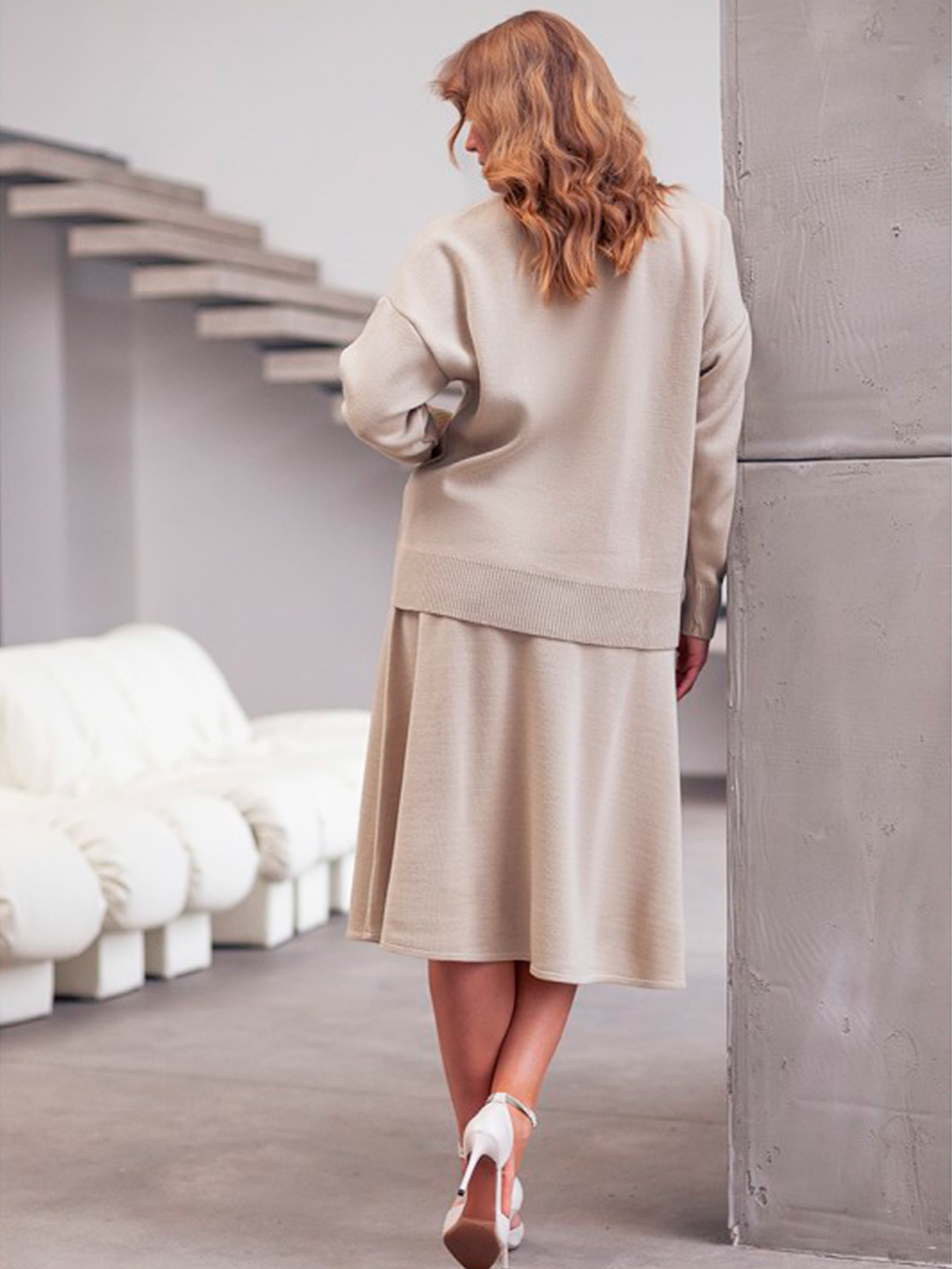 Жіноча Спідниця міді Nita (yubka-n2301-1-24-pena-bezhevij) колір бежевий, матеріал вовна/акрил