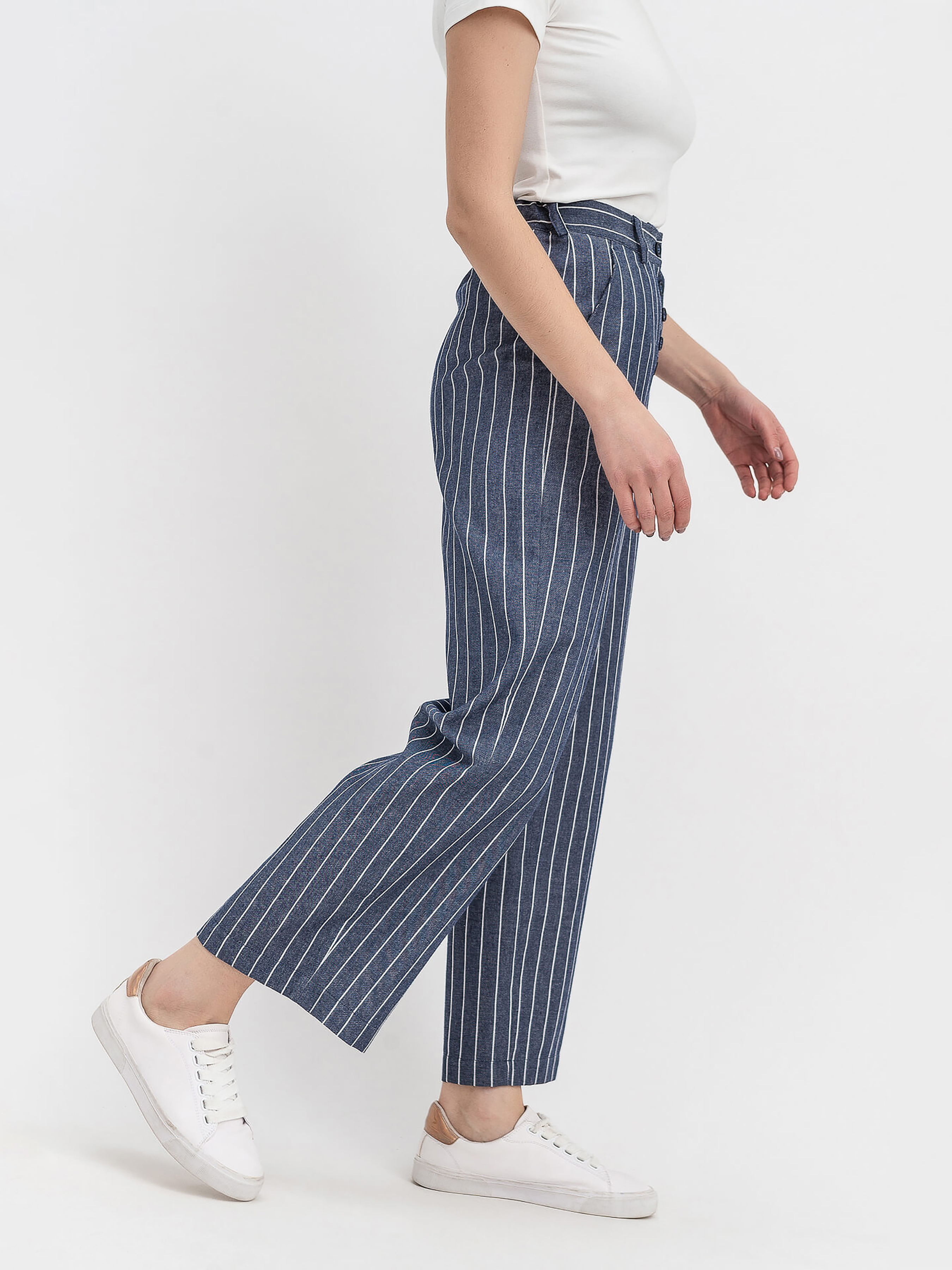 Жіночі Штани Lesia (BlueManuk22WPNTLS) колір синій, матеріал льон/віскоза