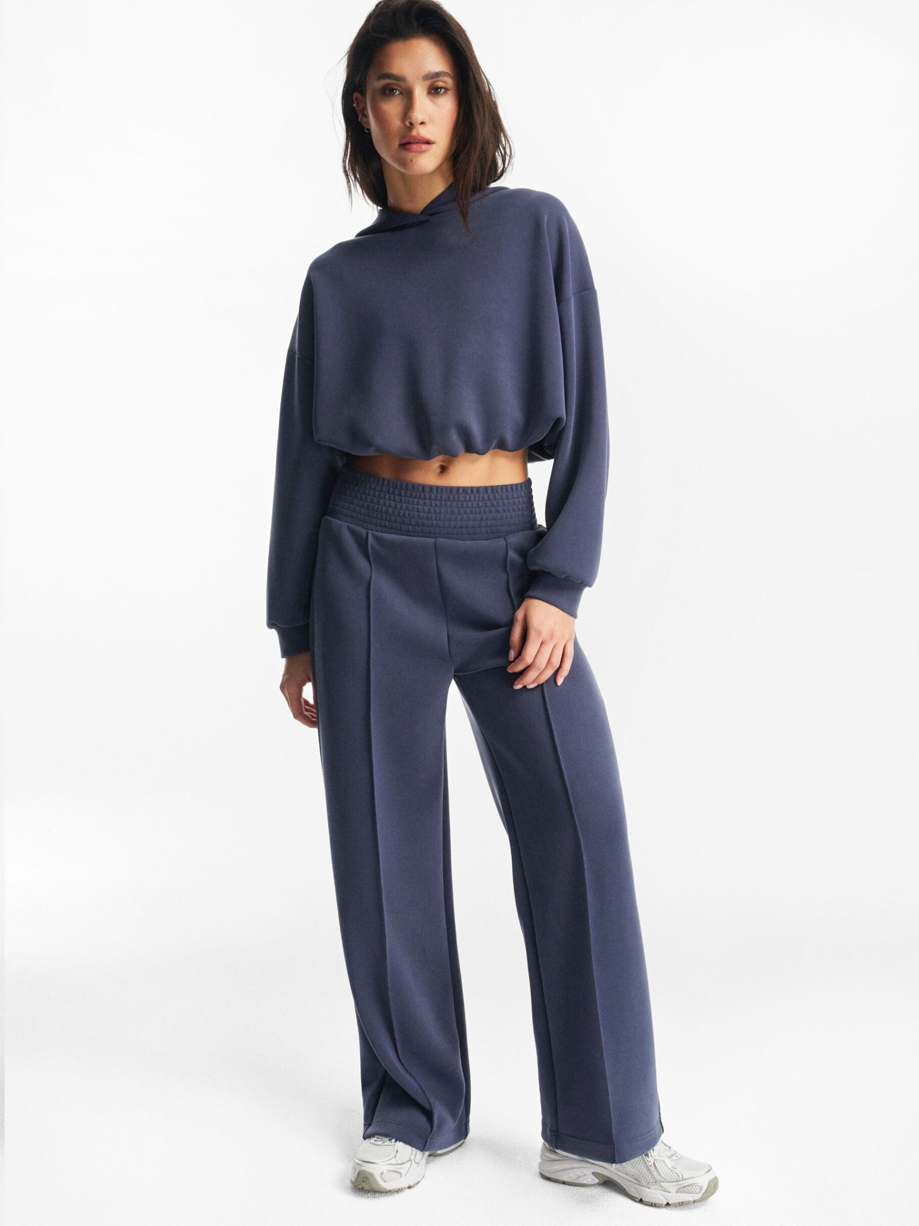 Спортивні штани SORNA / ID: 10048864 Зріст моделі: 172 см Розмір товару: S Широкі жіночі штани з декоративним широким поясом, виготовлені з м'якого матеріалу. Висока талія, вільний крій, широкі штанини з декоративними складками, дві приховані кишені на блискавці, виготовлені з м'якого трикотажу з віскозною сумішшю, вони ідеально поєднуються зі худі VIXNA. Ідеально підходять для теплих днів, вони чудово підходять для щоденного носіння та відпочинку. Склад: 46% поліестер 44% віскоза 10% еластан Догляд: - прання при максимум 30 °С - не відбілювати - не сушити в сушильній машині - прасувати за максимальної температури 110 °C - не піддавати хімчистці Розмір: XS S М L Ширина талії: 33 35 37 39 Довжина внутрішньої частини штанини: 72 72 74 76 Ширина стегна: 31 32 33 34 Ширина нижньої частини штанини: 27 28 29 30