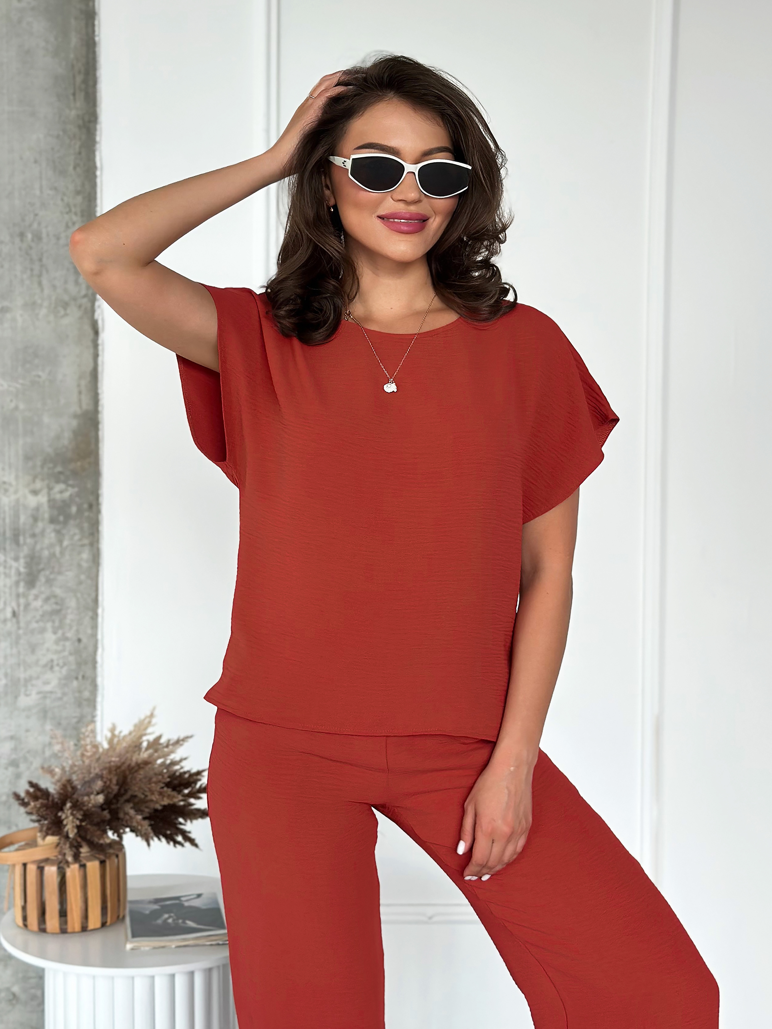 Жіночий Повсякденний костюм INNOE (210368-1-1) колір теракотовий, матеріал жатка