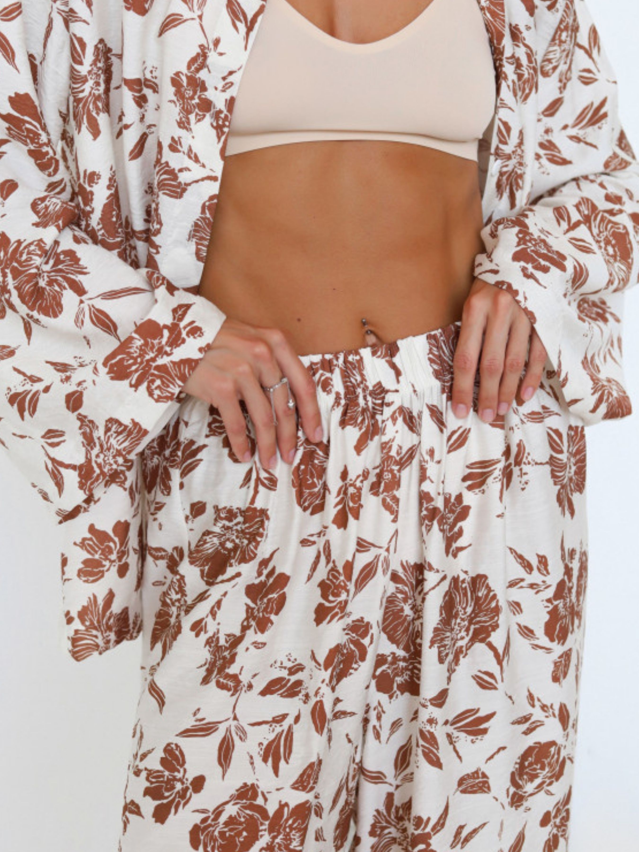 Цей костюм – для твоїх легких, розслаблених днів, коли хочеться м'якості, простору та відчуття "я в гармонії". Boho Bloom – двійка з сорочки oversize та штанів вільного крою з еластичним поясом. Тканина - жатий льон, той самий, що гарно тримає форму, але зовсім не потребує праски (так, ти правильно прочитала). Флористичний принт додає настрій «ніби я в Провансі», а крій – абсолютну свободу руху. Візьми з собою на подорож, на уїк-енд, або просто носи вдома з кайфом.